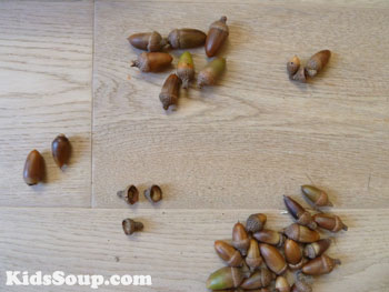 Using your acorn collection from before, or various nuts if you weren't able to find anything: